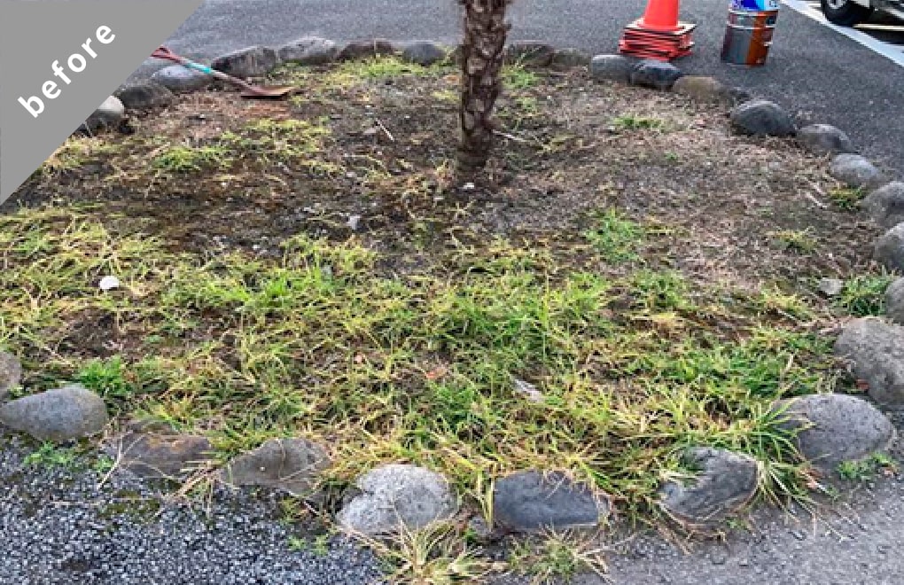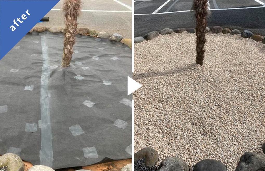 防草シートや砂利を敷き、雑草処理の負担軽減と美観整備をしています