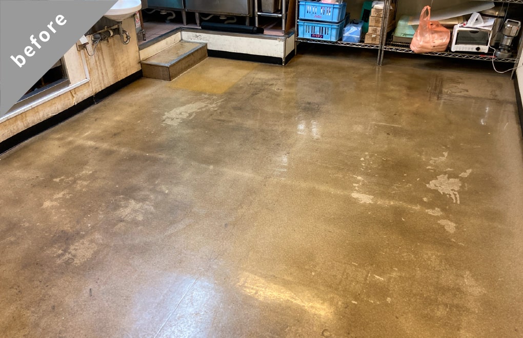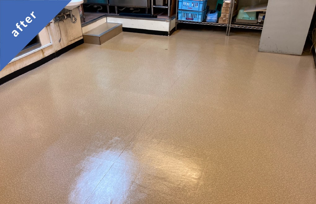 古く変色したワックスの剥離・除去と、再コーティングを実施しています