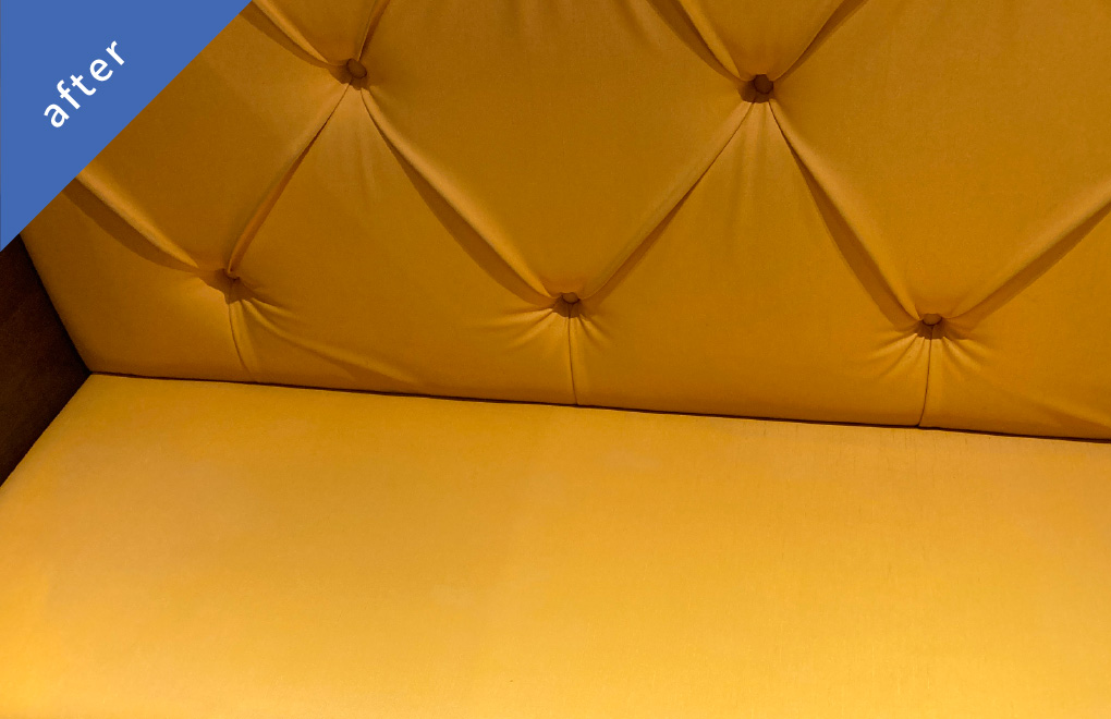 ベンチシートの頑固なシミ・汚れも特殊な洗剤で除去し、美観回復をしています