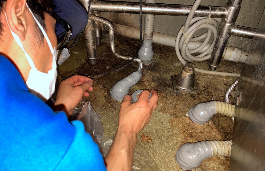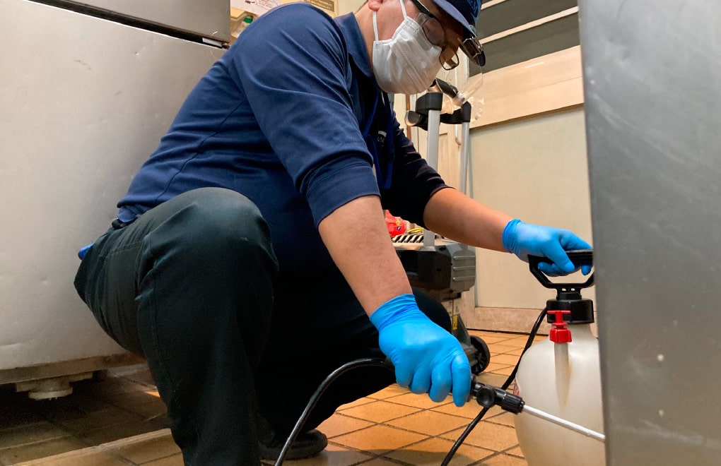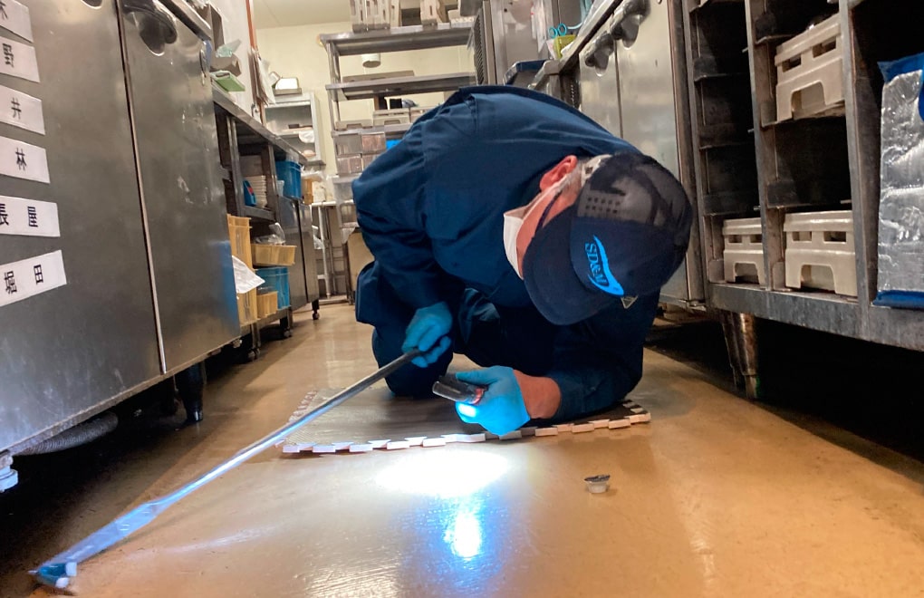 害虫を防除・駆除するために、消毒作業や機器下の清掃・穴塞作業を実施しています
