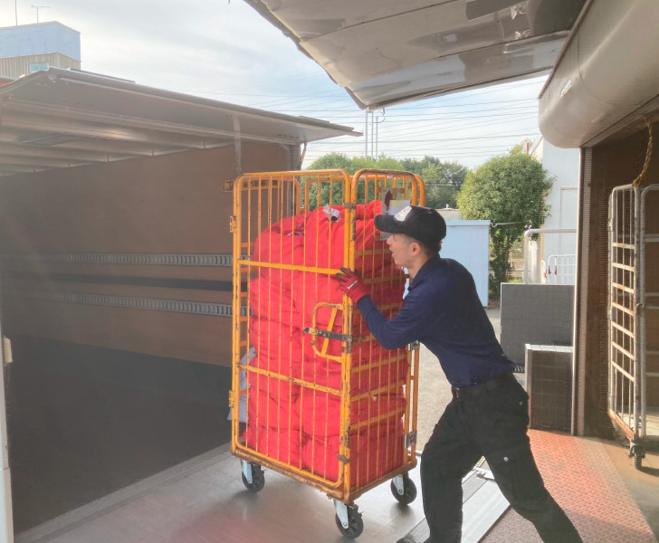 クリーニングを行い、清潔なユニフォームを店舗に届けています